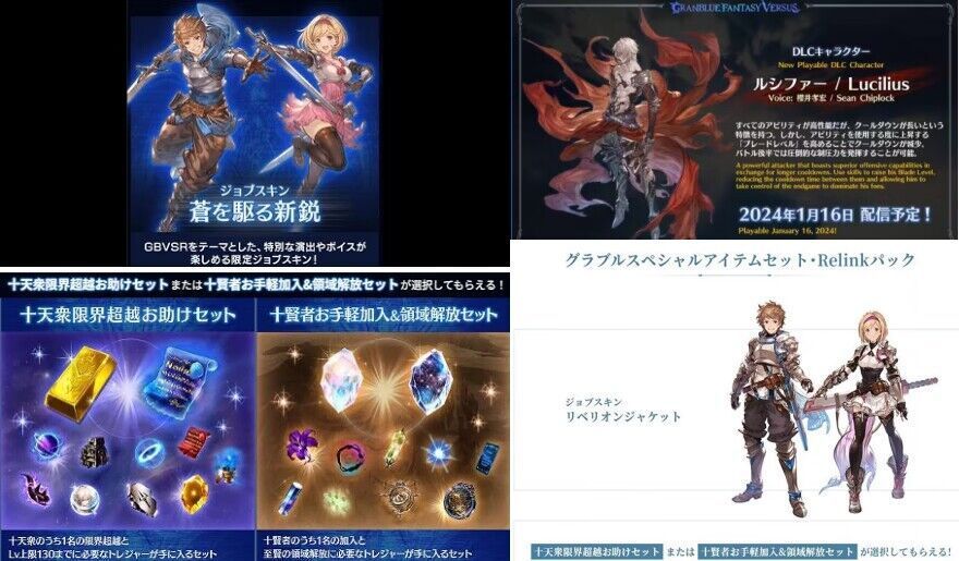 GBVSRのDLCキャラ「ルシファー」の特典としてLv230強化に必要な素材を先行入手できる。