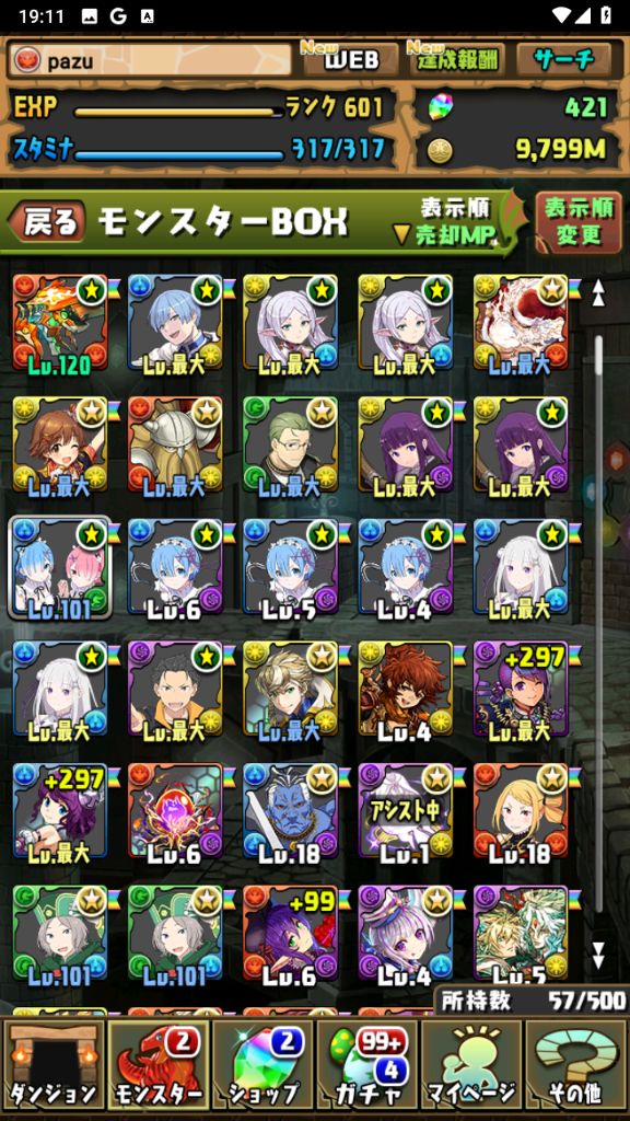 魔法石2500個+ ガチャキャラ200体前後+素材+その他